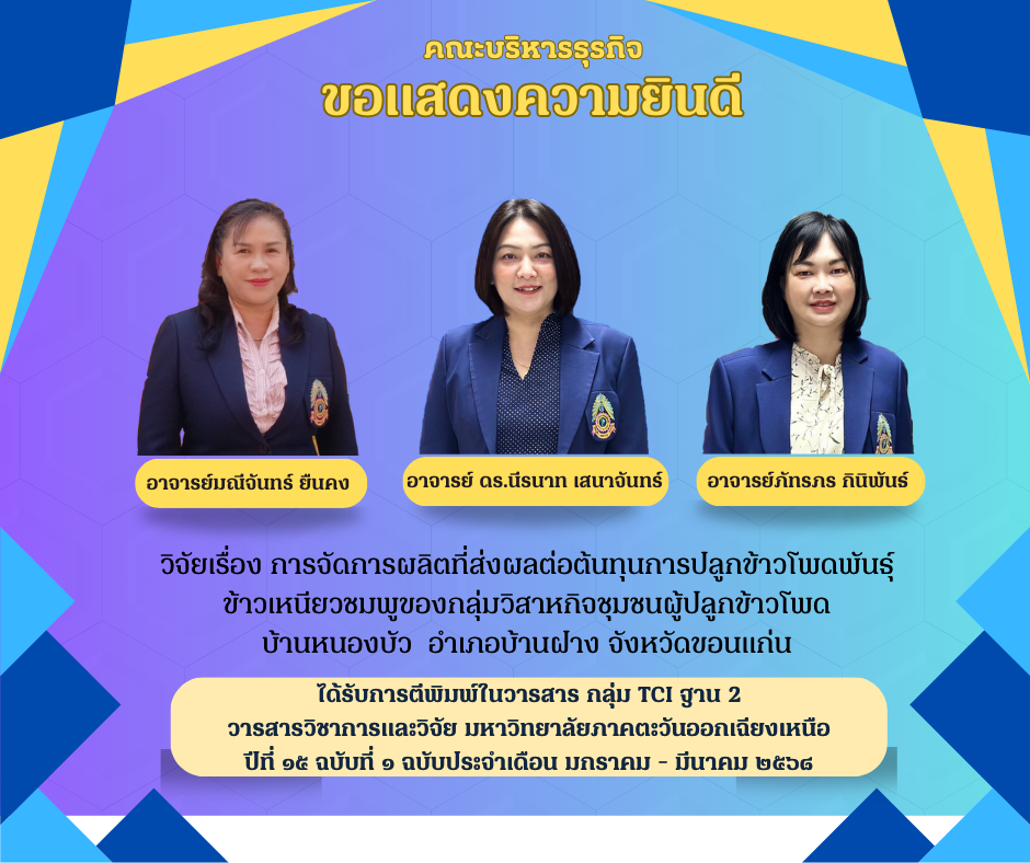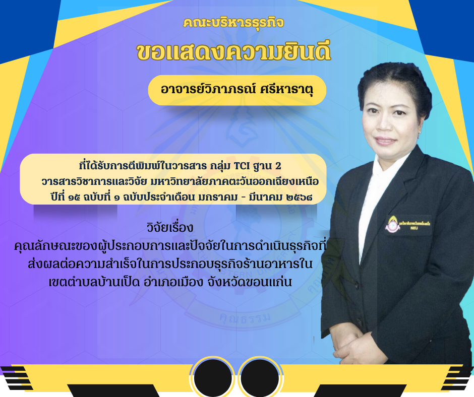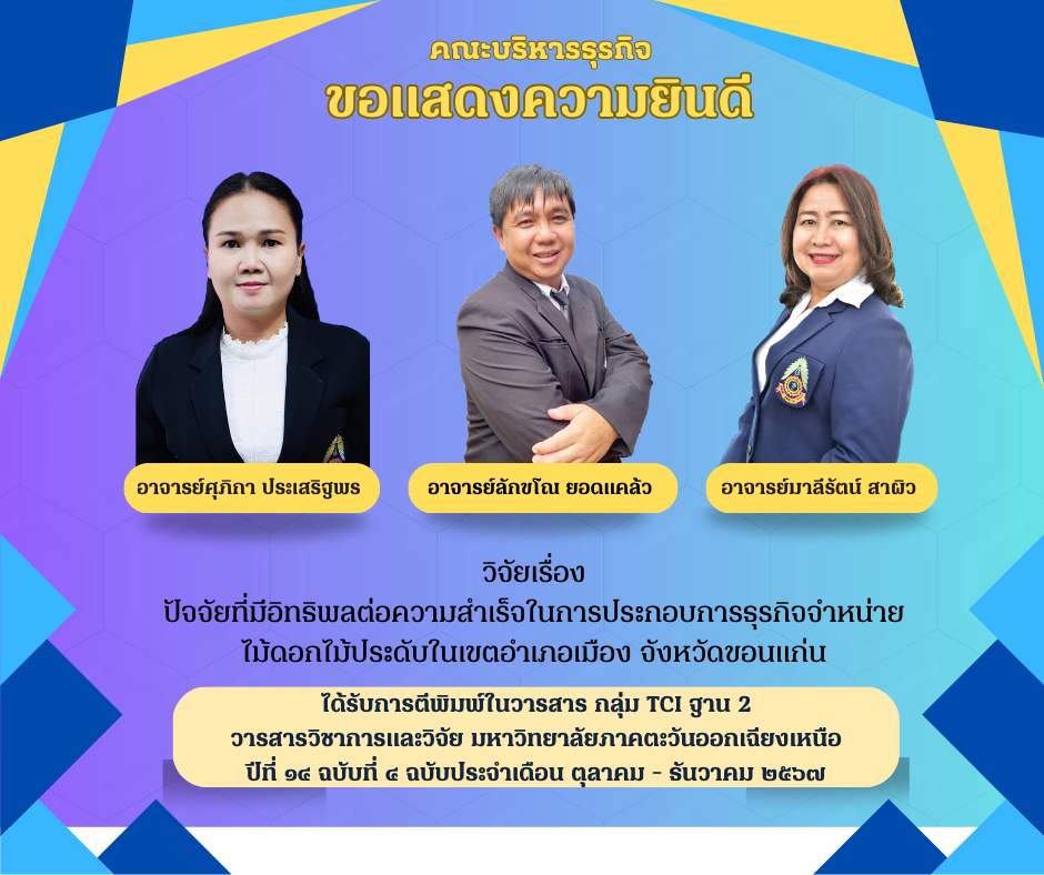 ผลงานการตีพิมพ์บทความวิจัยของอาจารย์ในคณะบริหารธุรกิจ